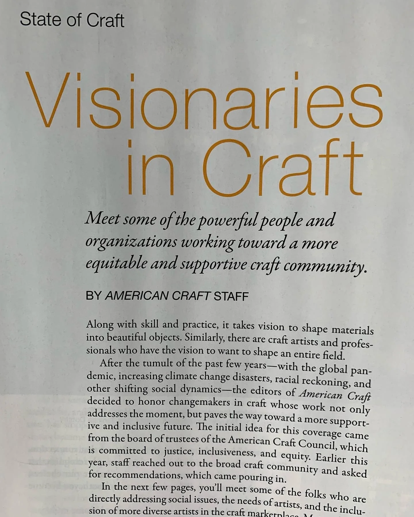 Alison Kysia and the 99 Clay Vessels were included in an article on "Visionaries of Craft" in their summer 2022 magazine.